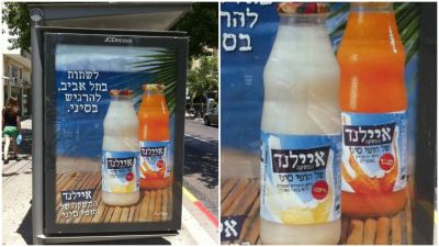 A juice ad in Tel Aviv, Israel, reportedly said it is produced in Egypt. (X)
