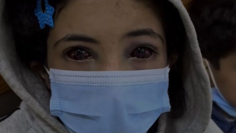 A video was captured of Amina Ghanem, 13, with her red eyes as she was suffering from burst blood vessels that affected both of her eyes.