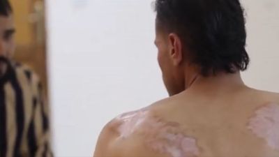 In the video, a former Sednaya prisoner was seen sitting topless with torture scars all over his body while talking to another man, who is currently in jail, and confronting him about the methods they used to "enjoy" while torturing prisoners.