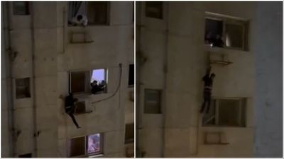 However, once he reached a high place, he was seen by people who attempted to catch him, so he jumped from the 10th floor to the one below and landed on the air conditioner fan, then he climbed down searching for an open window to save his life.