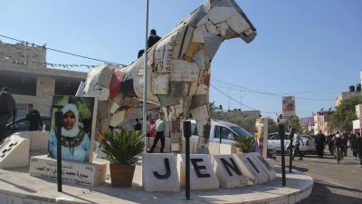 A Jenin word was also seen in front of the statue as well as an honoring will for a Palestinian woman who was killed by Israeli forces.