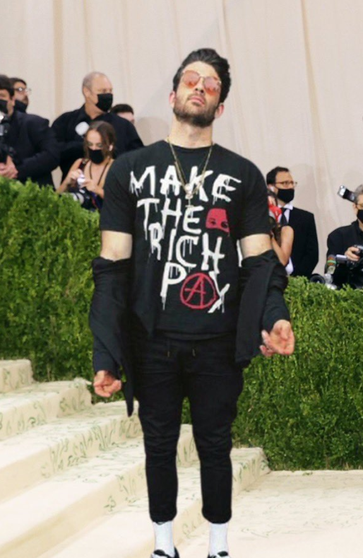 The well-known American Twitch streamer and left-wing political commentator also had a similar statement to that of AOC's, as he wore a black outfit reading "Make the Rich Pay," with the A printed in the peace symbol.