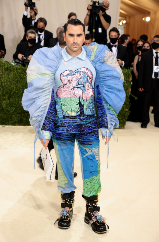 Another LGBTQ statement was present in the famous actor's outfit, as it featured two men kissing with an ocean background, in addition to parts of the world's map.