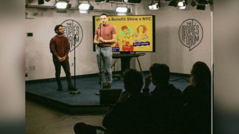 A 2019 photo of Mohammed El-Kurd was shared of him taking part in an event organized by Palestinian LGBTQ group AlQaws in New York City.. (Twitter)