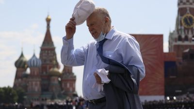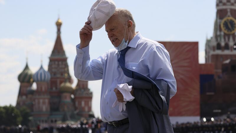 In this file photo taken on June 24, 2020 Vladimir Zhirinovsky, leader of the Liberal Democratic Party of Russia (LDPR), walks on Red Square after a military parade, which marks the 75th anniversary of the Soviet victory over Nazi Germany in World War Two, in Moscow. (Photo by Yekaterina SHTUKINA / SPUTNIK / AFP)