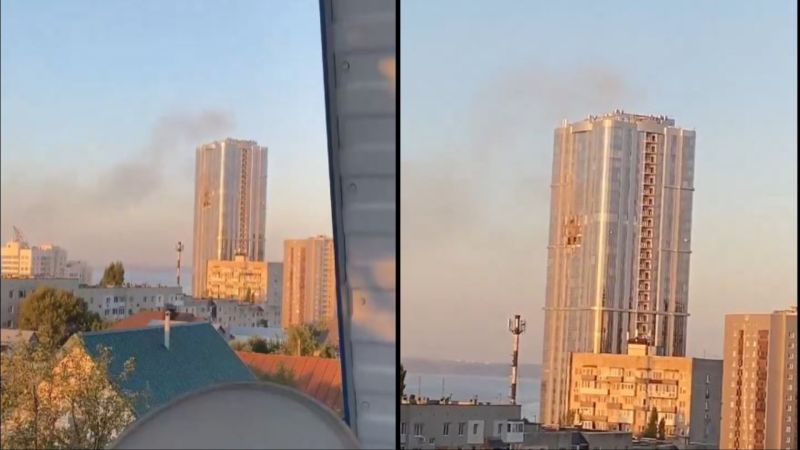 The Volga Sky, which is Saratov city's tallest building, was struck by a Ukrainian drone.