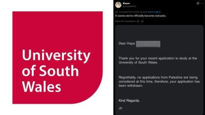 Another wrote criticizing the University of South Wales, "@UniSouthWales this is a shameful response. It smacks of discrimination against Palestinians. Surely in the absence of a reason, you can see this. How was this decision reached?"