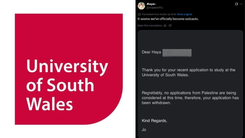 ALBAWABA - The University of South Wales recently sparked anger on social media among pro-Palestine activists after a Palestinian woman shared on X (formerly known as Twitter) the institution's rejection of her application via email.