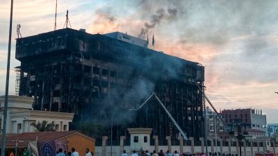 Video: man jumps from 6th floor amid Ismailia police station fire