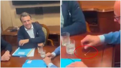 Both were seen uncomfortable while Macron was seen hastily clearing the table and removing a small white bag, with people claiming it is a bag of cocaine, and sharing awkward smiles with reporters.
