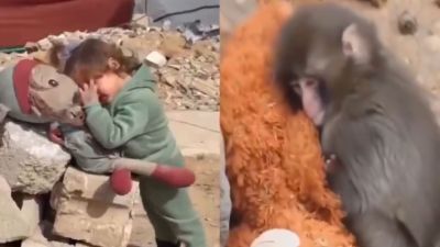 "Selective empathy is a disgrace," the Cuban Embassy in France posted a video on social media showing a baby monkey Punch carrying his stuffed animal and a little orphaned girl in Gaza holding her toy.