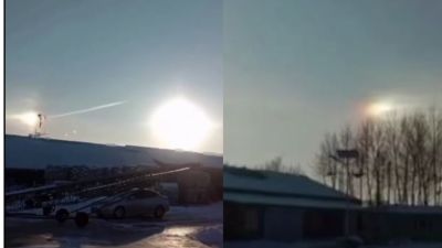 It is called the "Parhelion" or "lying sun," it is a weird phenomenon, according to scientists, and it is related to the atmosphere, which reflects the sun more than once. It occurs when the weather is very cold, so the sun's rays are reflected on the ice crystals carried in the clouds.