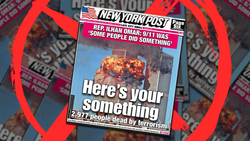 The New York Post featured Omar on the cover implying accusations of her relations to the 9/11 terrorist attacks