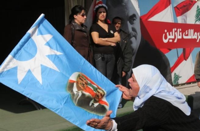 A Lebanese supporter of the Future Movement takes part in a protest in a neighborhood in the capital Beirut.
