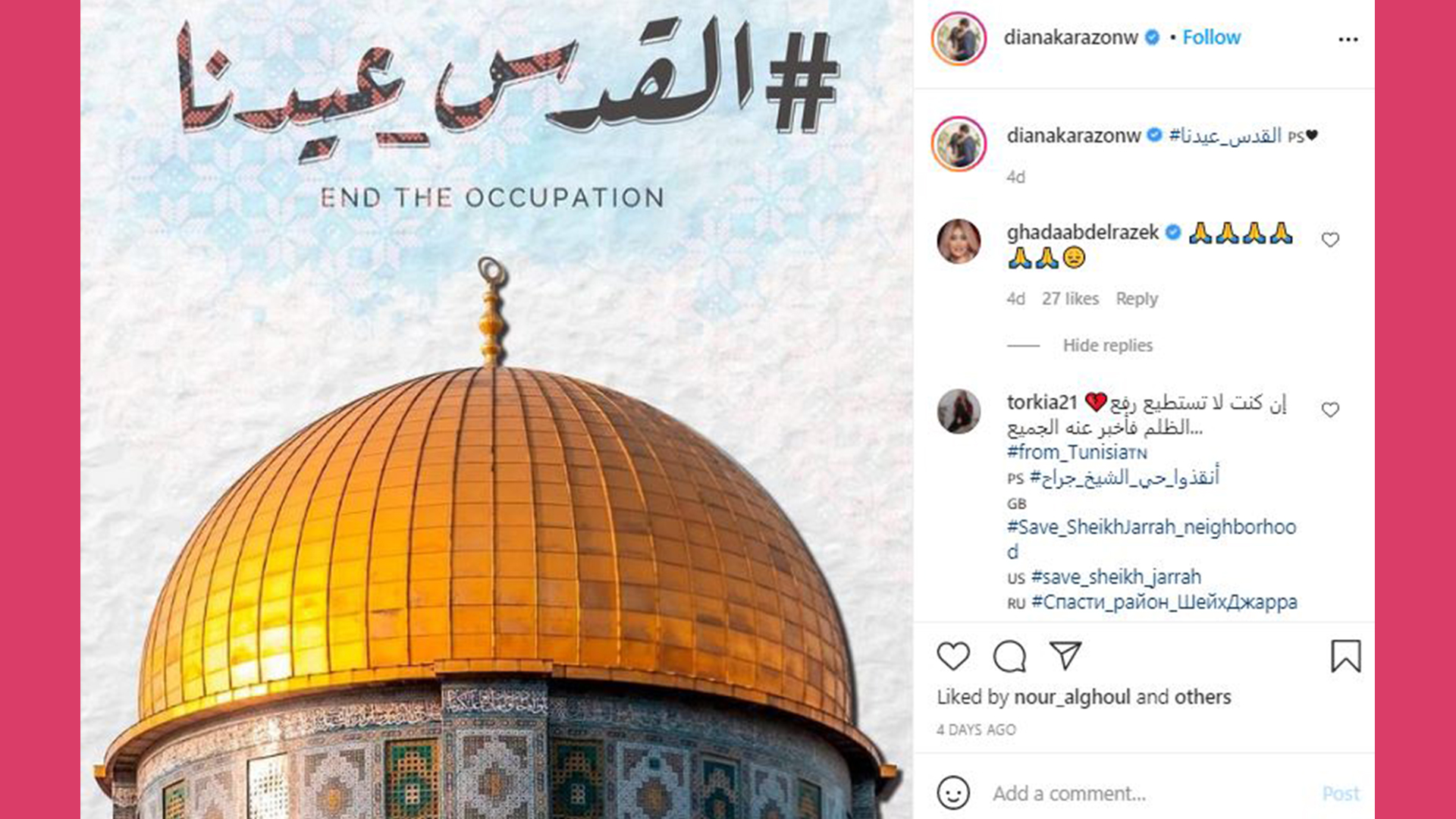 Here's 9 of them who lend their voices to support all Palestinians, especically those who are threatened to be evicted in Sheikh Jarrah neighborhood and people under attack in Gaza.