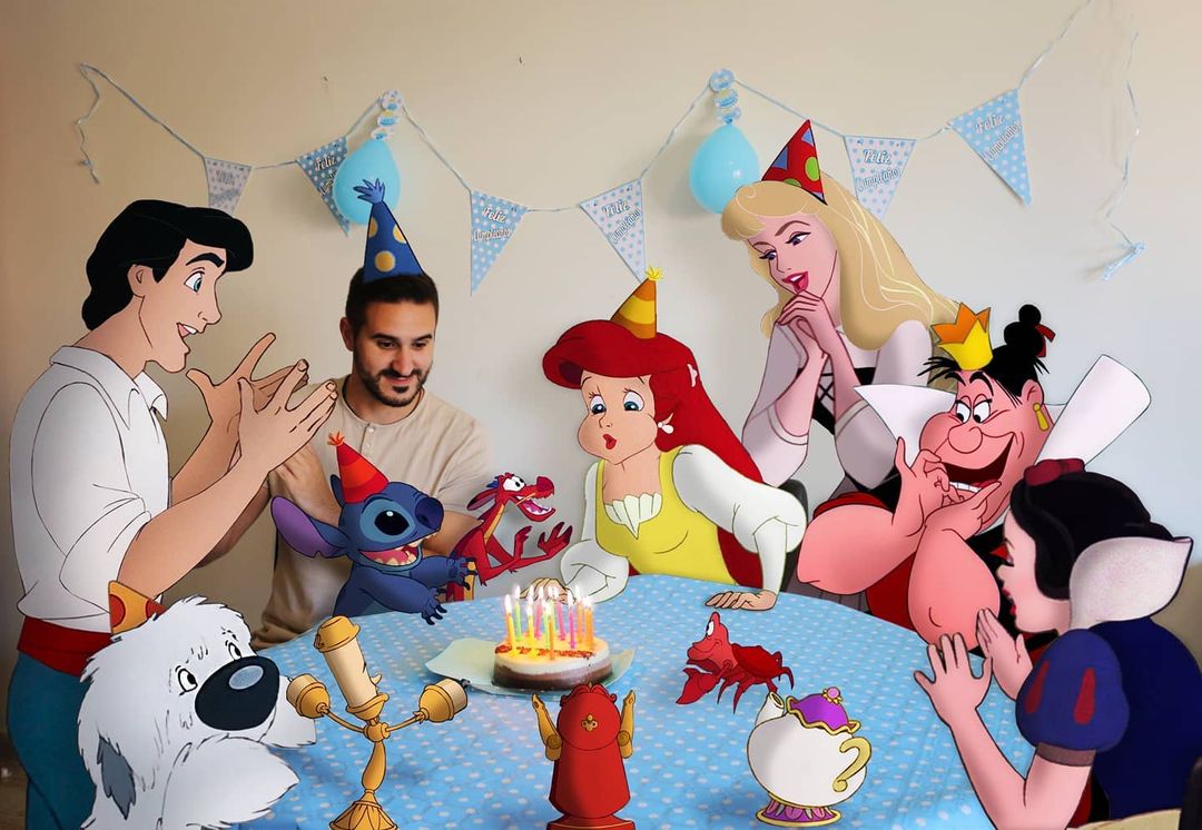 Samuel MB, artist, actor, and primary school teacher, mixes fantasy and reality by placing popular Disney characters in his photos. In the pictures, he hangs out with his favorite characters like Simba, Ariel, Hercules, and many more. He uses Photoshop to create these images and they can be pretty funny.