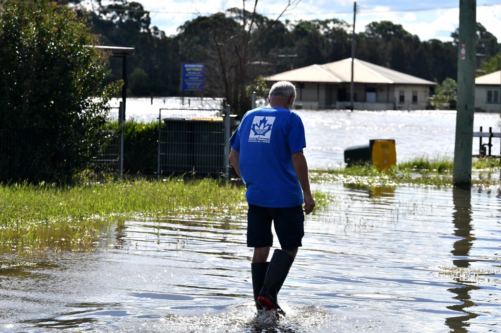 A man walks through floodwaters in a flooded residential area in the Windsor suburb of northwestern Sydney on March 24, 2021, after torrential downpours have lashed Australia's southeast for days. Saeed KHAN / AFP