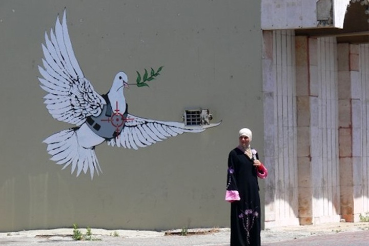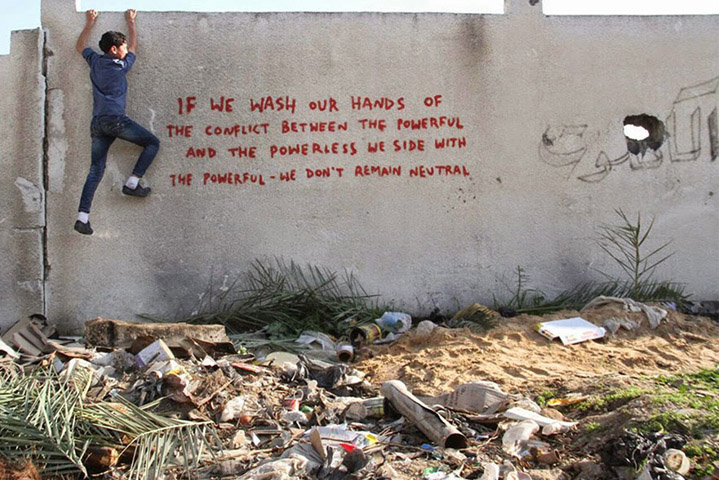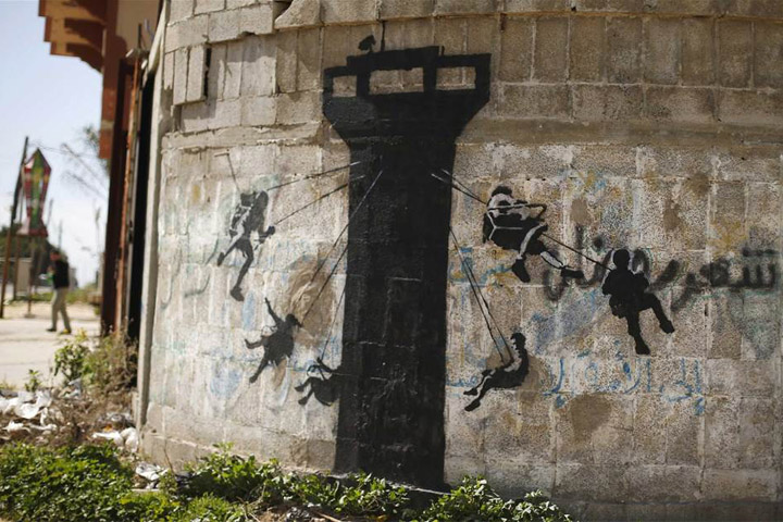 Eminently anonymous British street artist Banksy recently descended on Gaza, tagging some of its few unbroken surfaces with his iconic images. This time, he also created a mock video documentary showing the devastation of his latest urban canvas. It shows the squalid conditions in Gaza six months after the end of the war between Hamas and Israel. You can see the full mockumentary on the artist’s website.