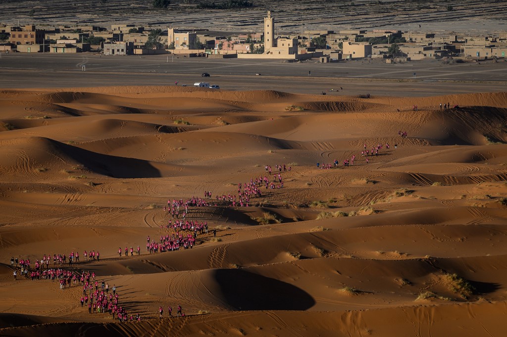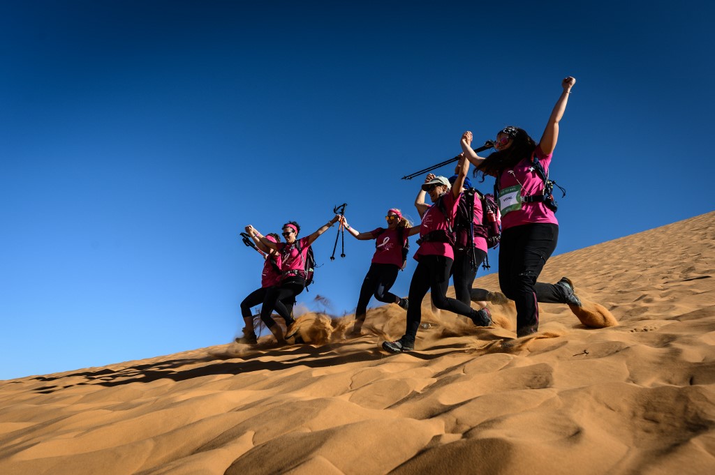 Using only a compass, a map and a topographical reporter, Rose Trip Maroc is a well-known event for a women-oriented where teams of three must travel through the southern Moroccan Sahara Desert.