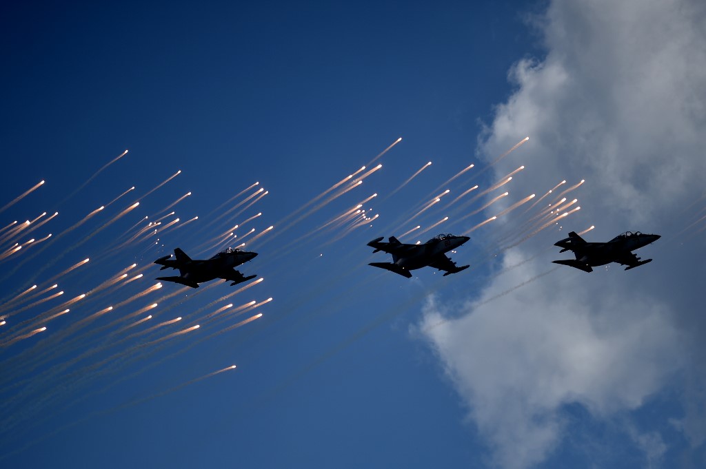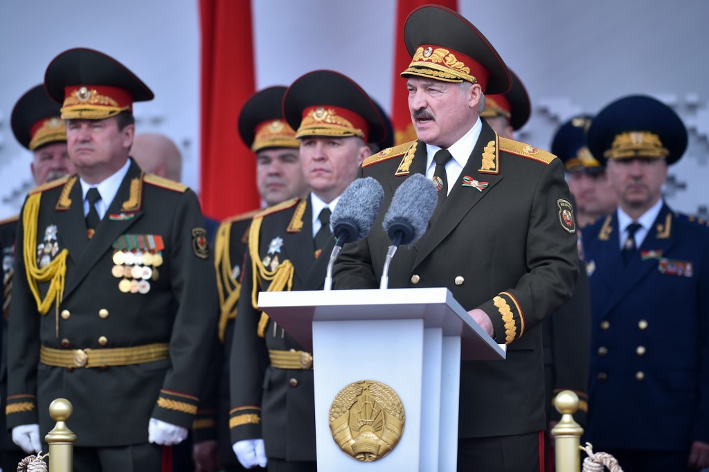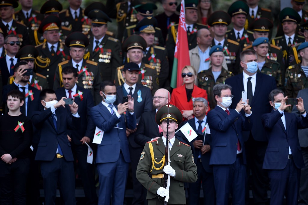 President Alexander Lukashenko, who has been dismissive of the pandemic and the "psychosis" around the virus, watched in military uniform with top brass as some 4,000 troops marched past and planes and helicopters flew overhead.