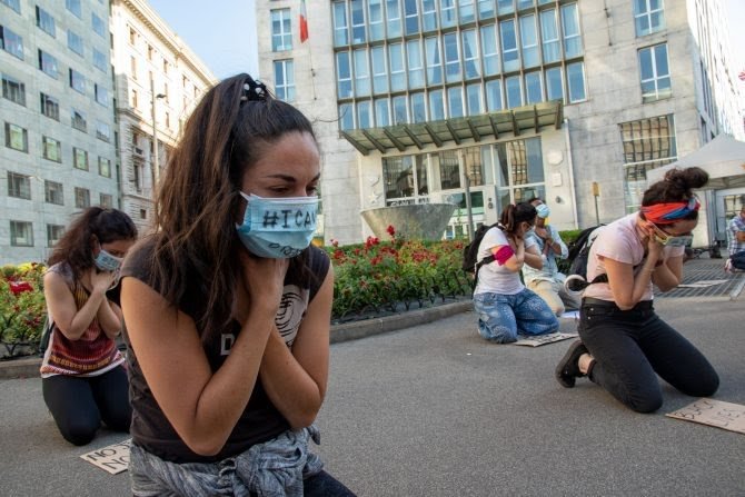 Flashmob of protest against the killing of George Floyd in front of the consulate of United States of America on May 28, 2020 in Milan, Italy (Twitter)