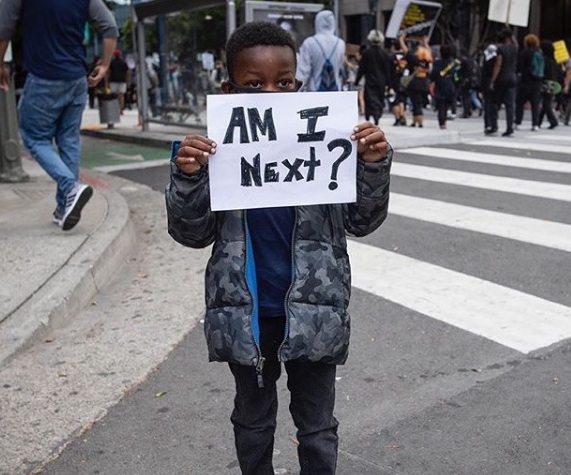 A boy holds a sign during a protest Friday in downtown Los Angeles over the death of George Floyd (unicefus/Instagram)