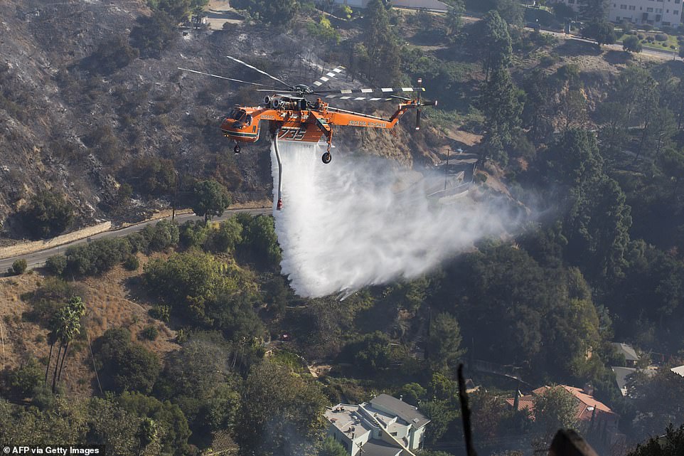 Around 1,100 firefighters headed to Los Angeles County to fight the fires overnight, desperately spraying the Brentwood area.