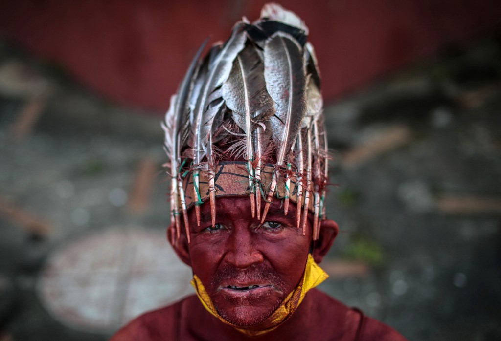 A Catholic faithful painted in red ink poses for a picture as he takes part in the opening of the ten-day celebration of the Santo Domingo de Guzman festival, outside the Las Sierritas de Santo Domingo church in Managua, on August 1, 2020 amid the COVID-19 novel coronavirus pandemic. Despite the Catholic Church cancelling all religious activities due to the coronavirus pandemic, devotees gathered outside the church for the celebration. Inti OCON / AFP