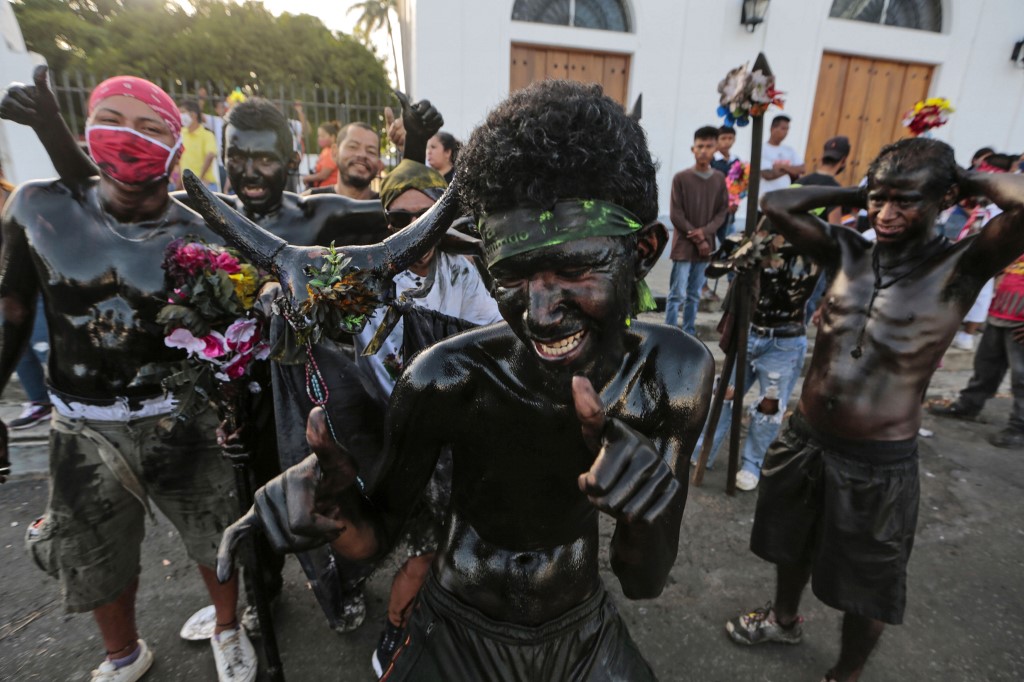 Catholic faithfuls smeared in burnt oil take part in the opening of the ten-day celebration of the Santo Domingo de Guzman festival, outside the Las Sierritas de Santo Domingo church in Managua, on August 1, 2020 amid the COVID-19 novel coronavirus pandemic. Despite the Catholic Church cancelling all religious activities due to the coronavirus pandemic, devotees gathered outside the church for the celebration. Inti OCON / AFP