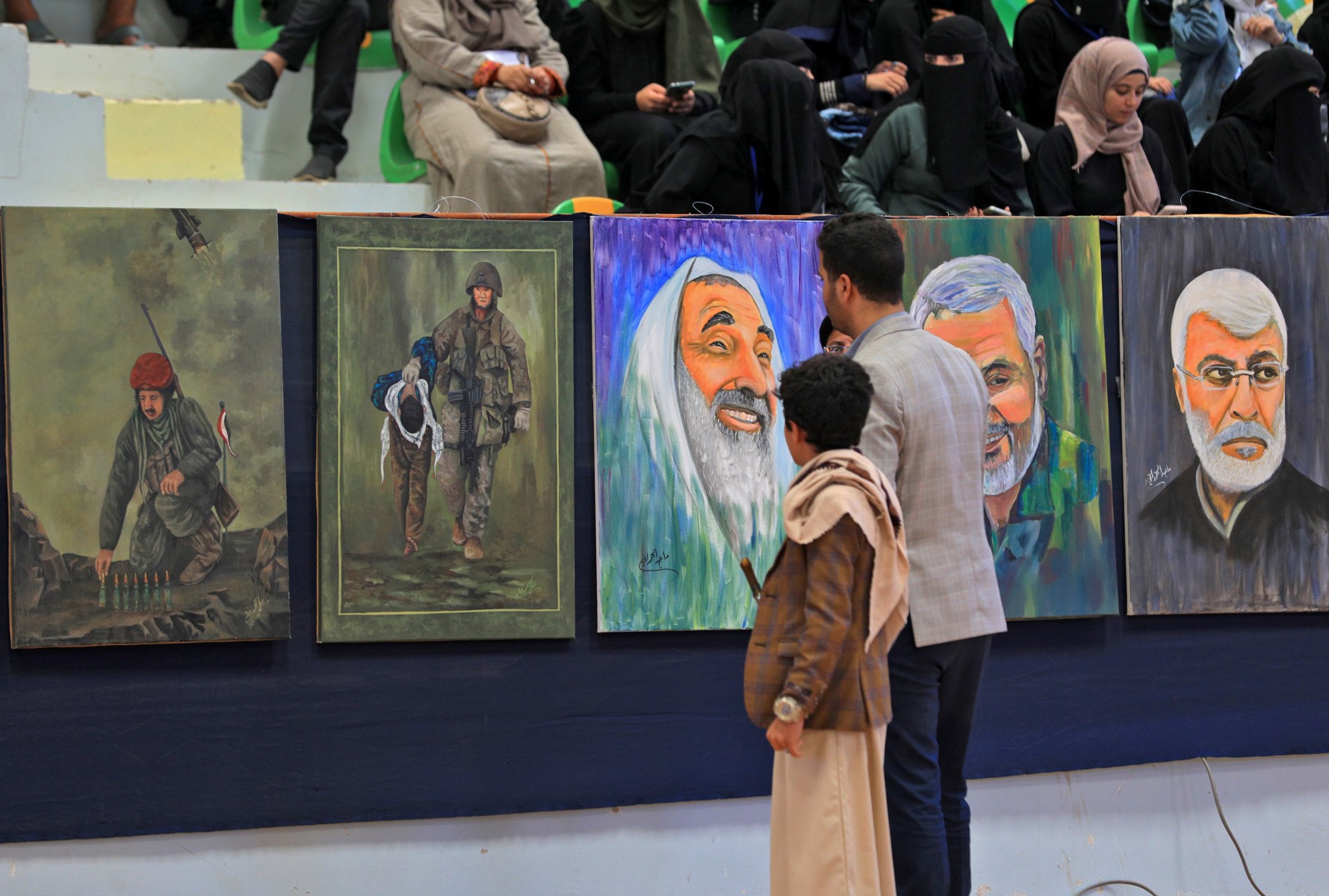 Furthermore, portraits depicting slain Iraqi commander Abu Mahdi al-Muhandis, slain Iranian commander Qasem Soleimani, and late Hamas spiritual leader Sheikh Ahmed Yassin were also seen in the art exhibition.