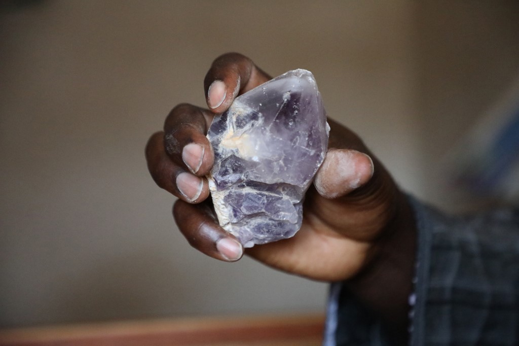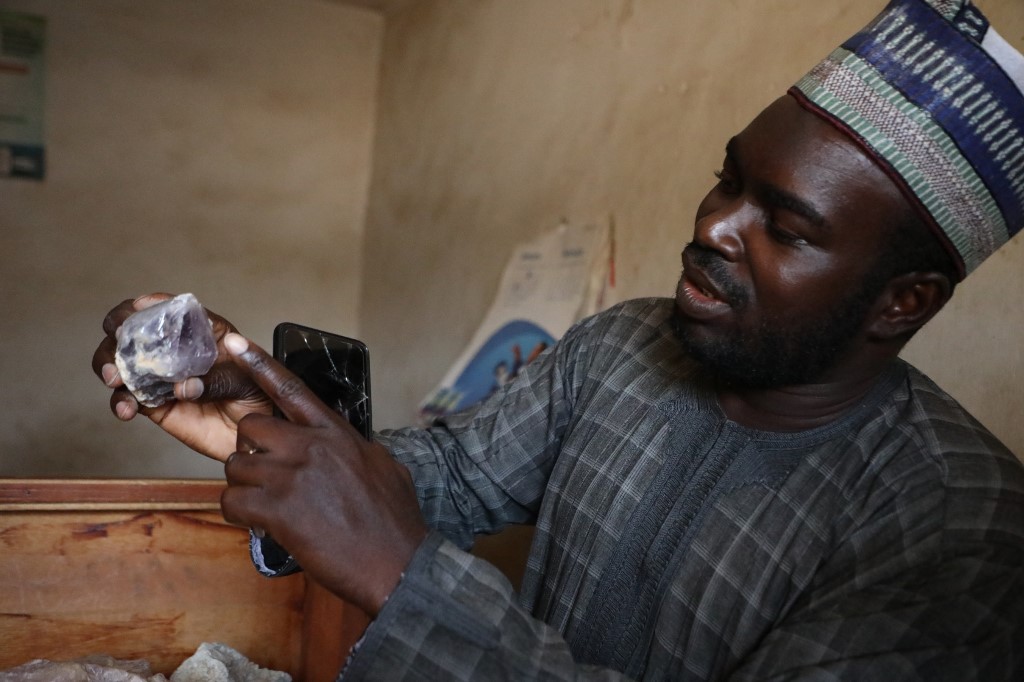 Ayuba Ahmad Muhammed, secretary of the Zamfara State Gold Buyers and Sellers, displays a mined mineral in Gusau, on December 5, 2019. For generations, the mineral-rich earth of Nigeria's Zamfara state has provided families living here with a way to make ends meet. Kola Sulaimon / AFP