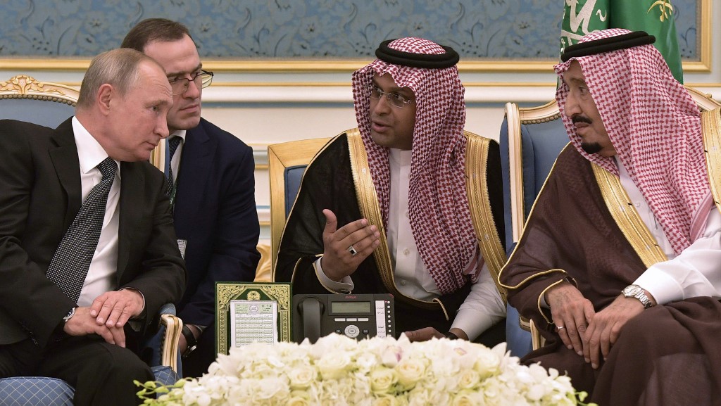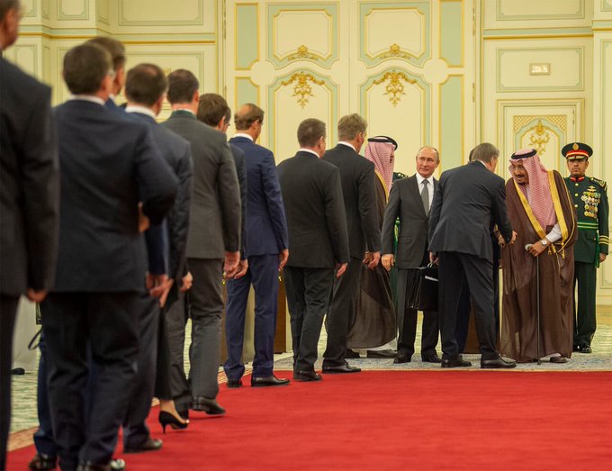 Vladimir Putin — in Saudi Arabia for only the second time in his presidency — was greeted in Riyadh by an honor guard of Arabian horses and royal soldiers. He was transported to the present, by electric buggy, for a grand reception inside King Salman’s palace.