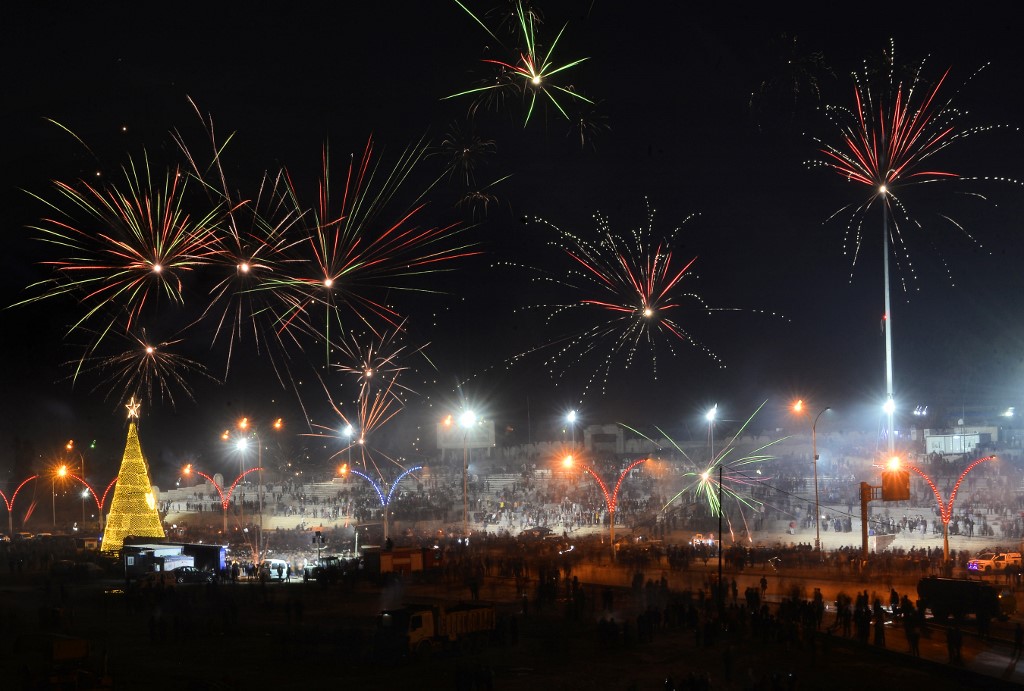 Iraqis celebrate New Year's Eve in the northern city Mosul on December 31, 2020. Zaid AL-OBEIDI / AFP