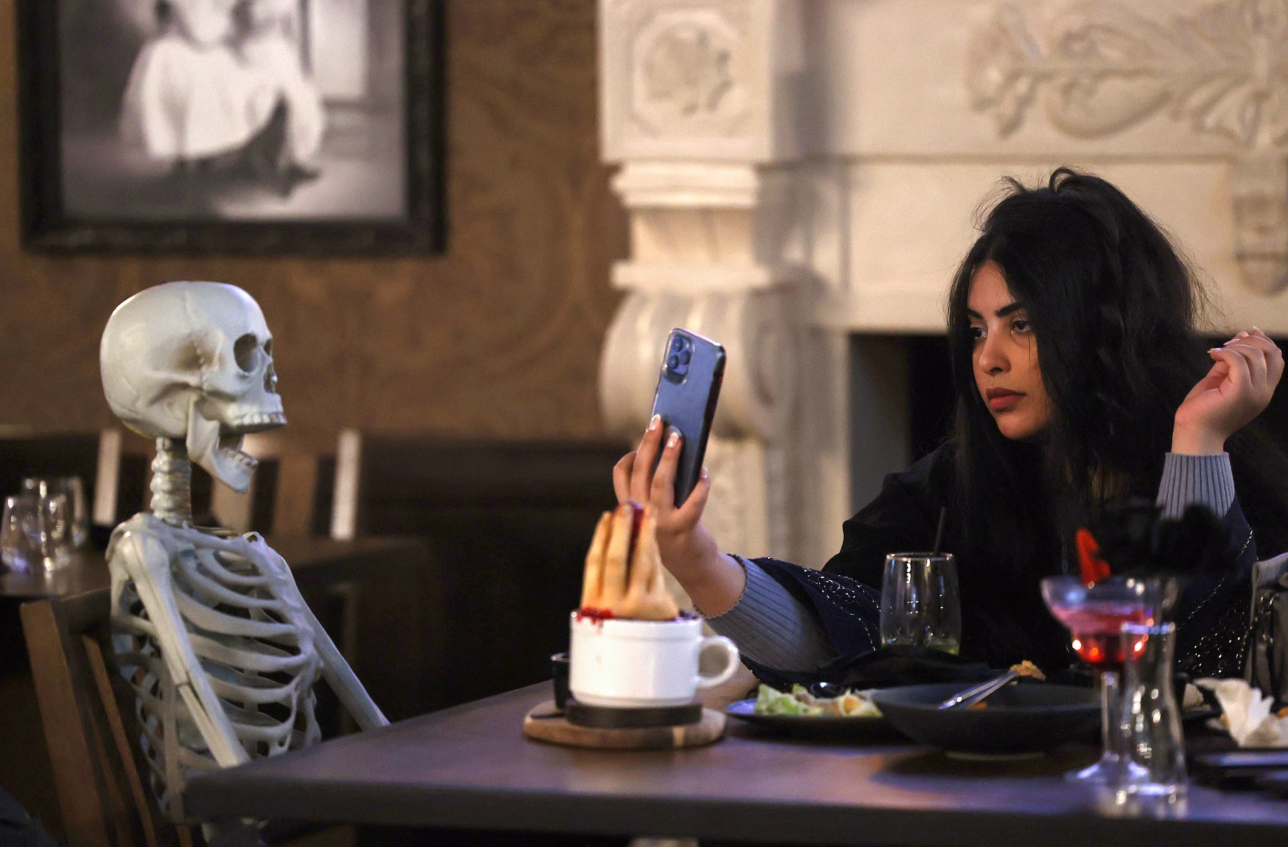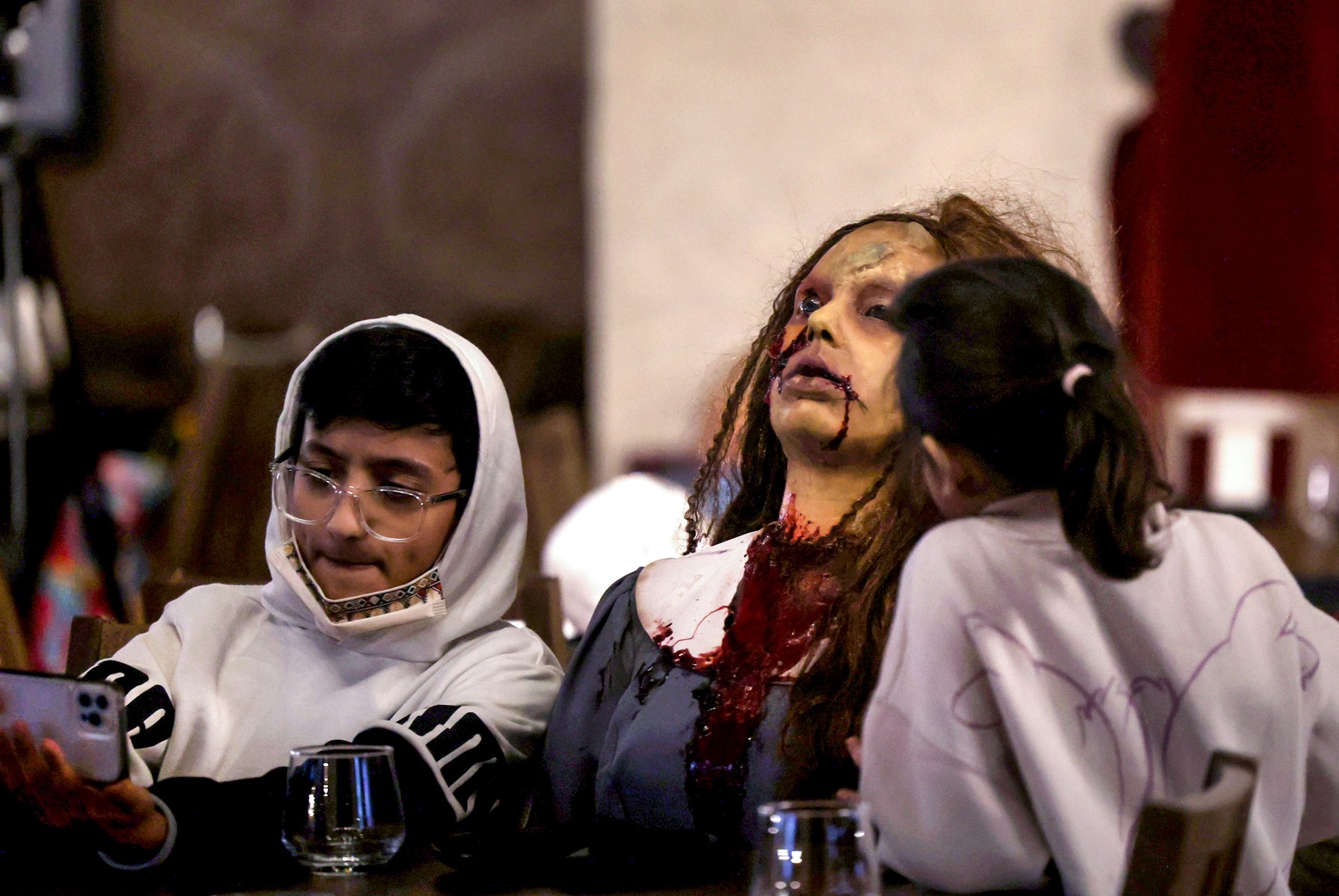 Saudi restaurant, "Shadows", caters to horror film buffs with strong stomachs, allowing them to savour their dishes while staff in gory costumes put on interactive shows.