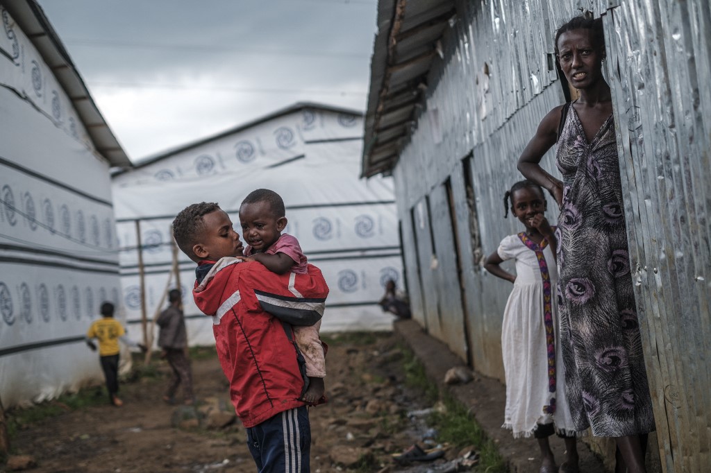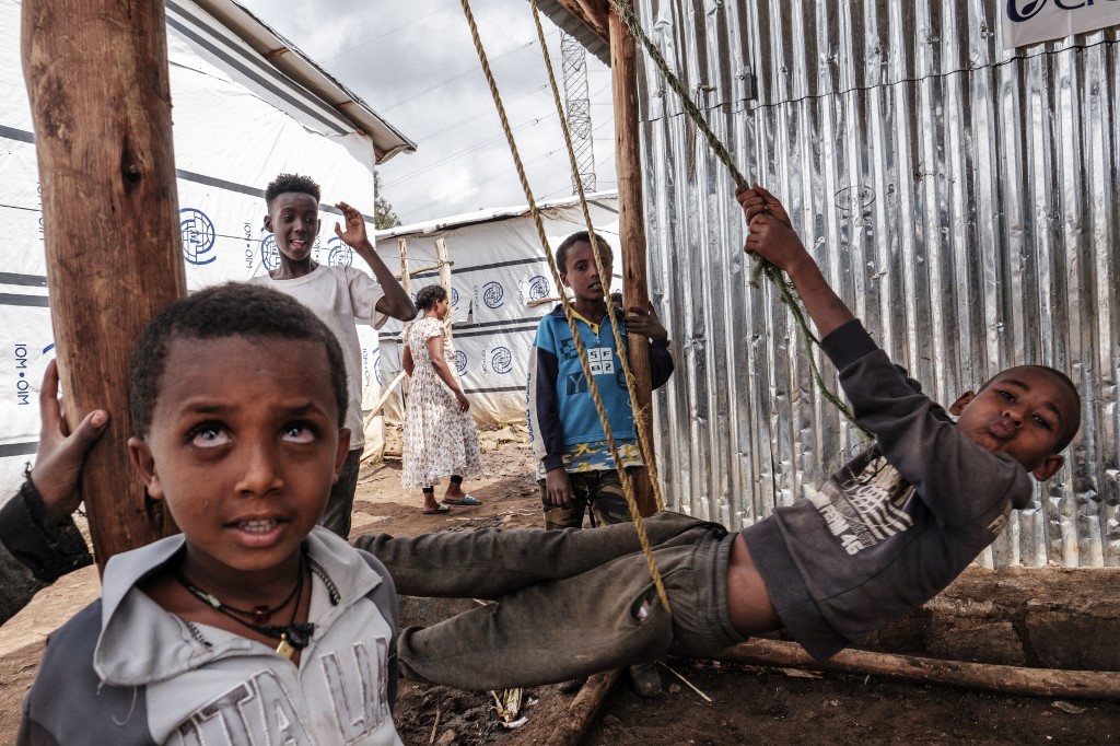 Internally displaced children play at a camp in the town of Azezo, Ethiopia, on July 12, 2021. The camp hosts Ethiopians as well as Eritrean refugees uprooted by the ongoing war in the region of Tigray. The July 13 clashes at Mai Aini represented just the latest example of how the Tigray war has upended life for many thousands of Eritrean refugees, who for more than two decades had come to see the region as a sanctuary from their oppressive homeland. EDUARDO SOTERAS / AFP