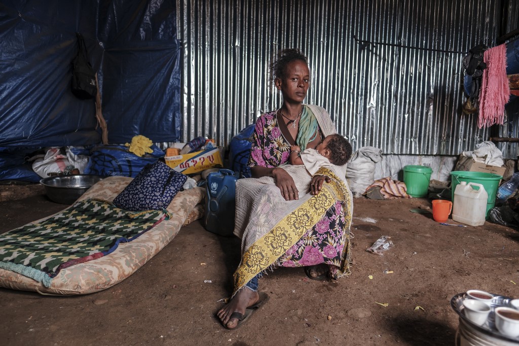 Seble Melkamu, Eritrean refugee, is portrayed with her son as she breastfeeds him in her shelter at a camp in the town of Azezo, Ethiopia, on July 12, 2021. The camp hosts Ethiopians as well as Eritrean refugees uprooted by the ongoing war in the region of Tigray. The July 13 clashes at Mai Aini represented just the latest example of how the Tigray war has upended life for many thousands of Eritrean refugees, who for more than two decades had come to see the region as a sanctuary from their oppressive homeland. EDUARDO SOTERAS / AFP