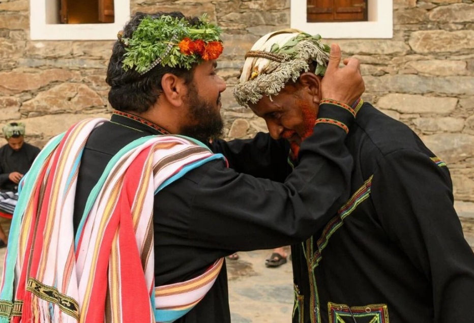 The men wear ornate garlands made from herbs and flowers growing wild in the foothills of the mountains (vice.com)
