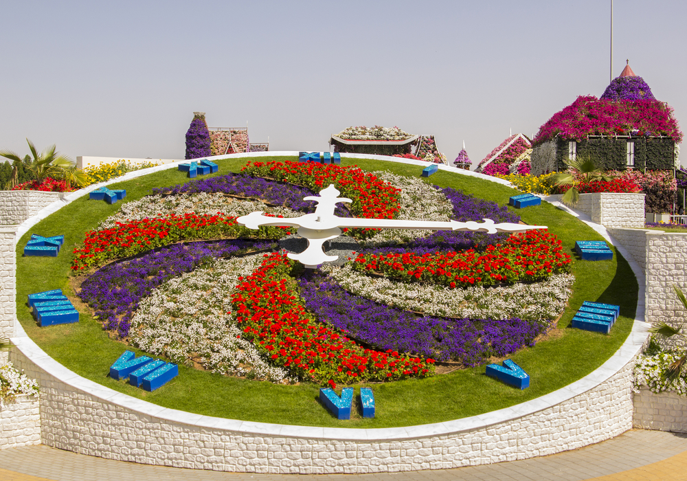 Bright floral clock in the Miracle Garden in Dubai. (Shutterstock/ File Photo)