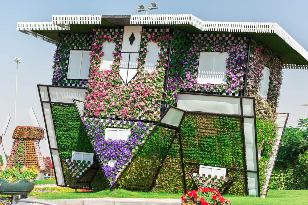 Upside down house made of flowers at Dubai Miracle Garden.(Shutterstock/ File Photo)