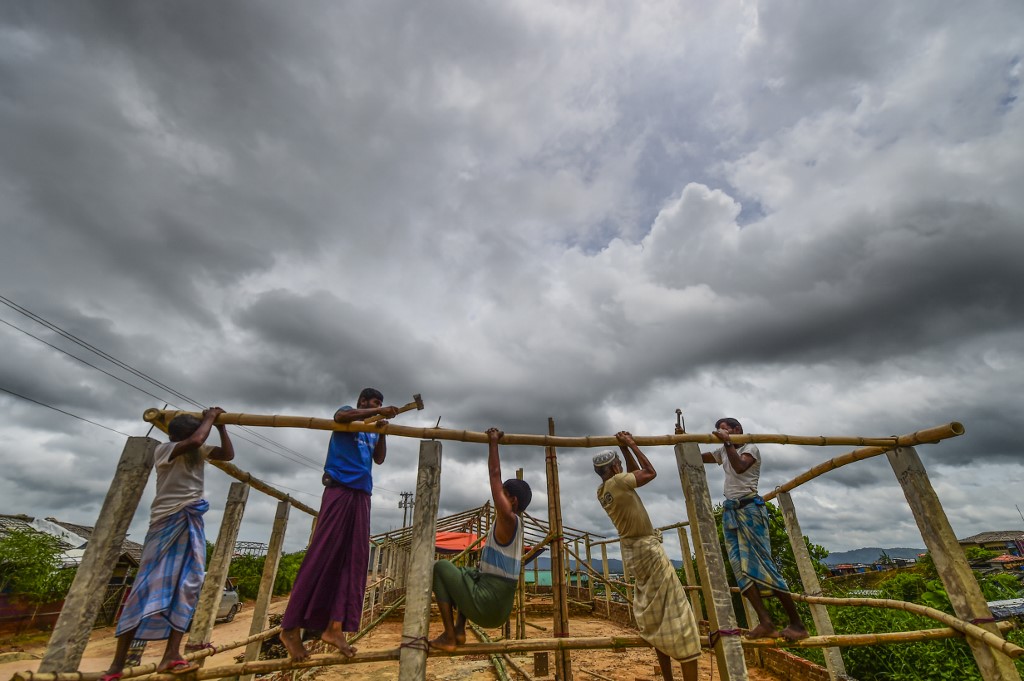 Rohingya refugees build a makeshift office at Kutupalong refugee camp in Ukhia district on August 23, 2019.  MUNIR UZ ZAMAN / AFP