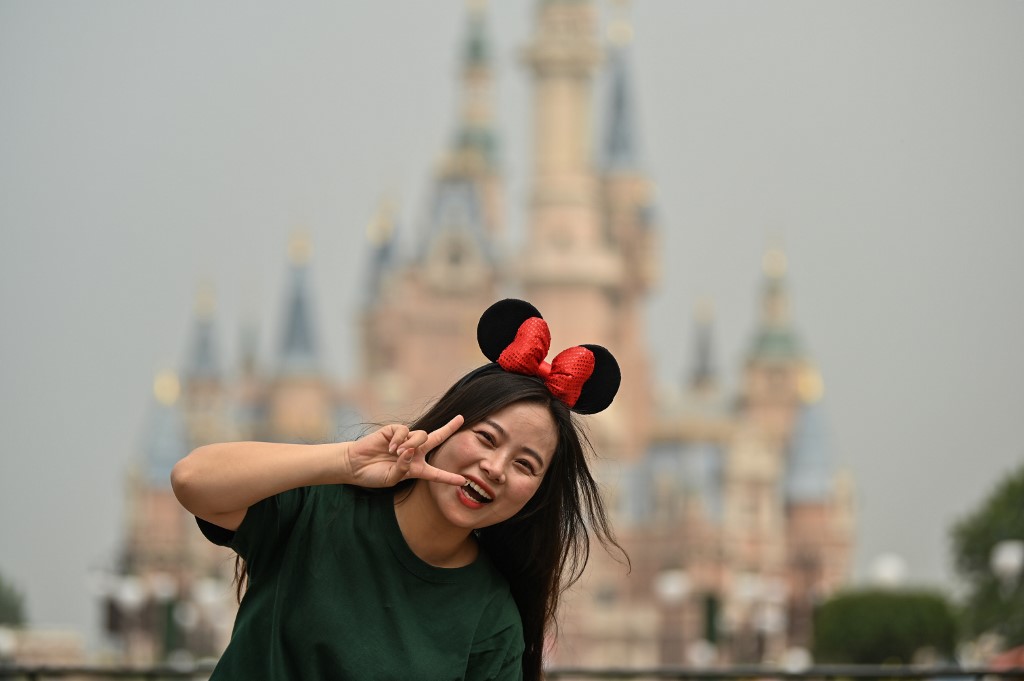 A woman wearing a face masks visits the Disneyland amusement park in Shanghai on May 11, 2020. Disneyland Shanghai reopened on May 11 to the public after being closed since January due to the COVID-19 coronavirus outbreak. Hector RETAMAL / AFP