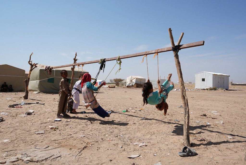 Yemeni children play at the Jaw al-Naseem camp for internally displaced people on the outskirts of the northern city of Marib, on February 18, 2021 in the Saudi-backed Yemeni government's last northern bastion. Until early last year, life in Marib city was relatively peaceful despite the Yemen's civil war that erupted in 2014. The United Nations warned last week of a potential humanitarian disaster if the fight for Marib continues, saying it has put "millions of civilians at risk". More than 3.3 million hav