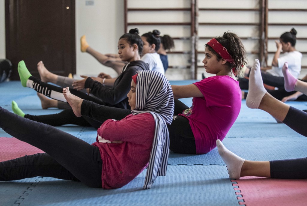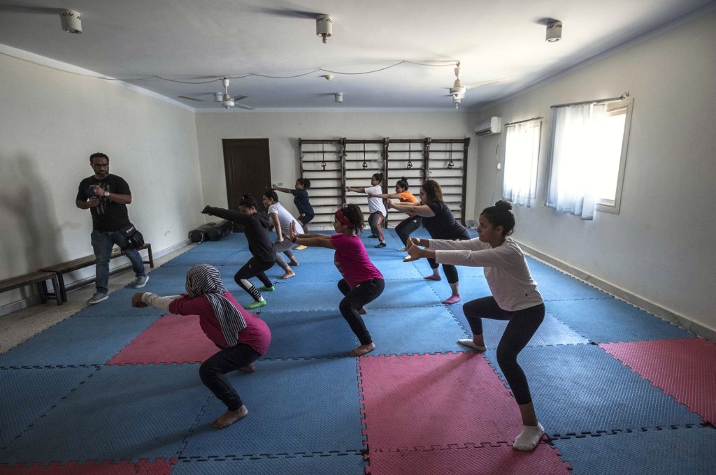 Youths from the "Children without Shelter" program attend a fitness sessions in their residences at Banati foundation in 6th October City on the outskirts of the capital Cairo on July 13, 2020.Khaled DESOUKI / AFP
