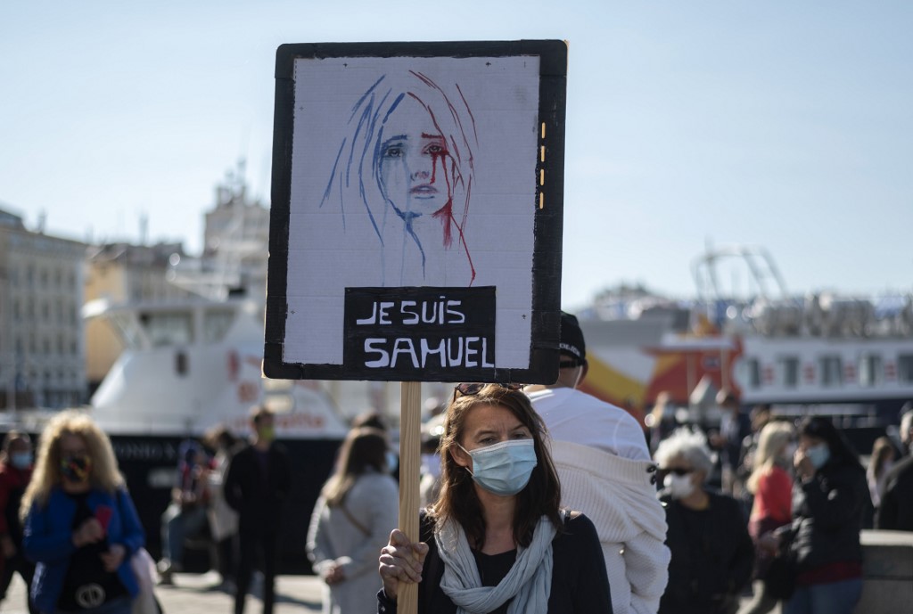Leading politicians, civil rights associations as well as teachers’ unions have joined hands on the Place de la République in Paris carrying placards proclaiming “Je suis Samuel”, an echo of the “Je suis Charlie” slogan following the 2015 attack where an Islamist gunman mudered 12 at the offices of the satirical newspaper Charlie Hebdo.