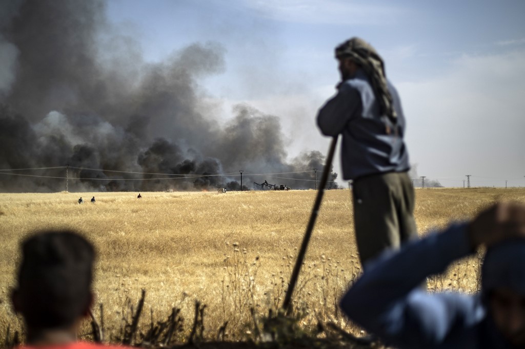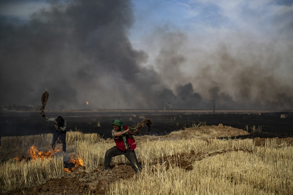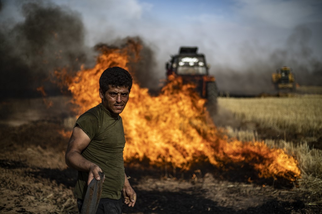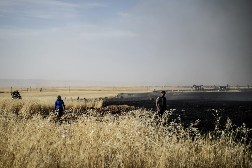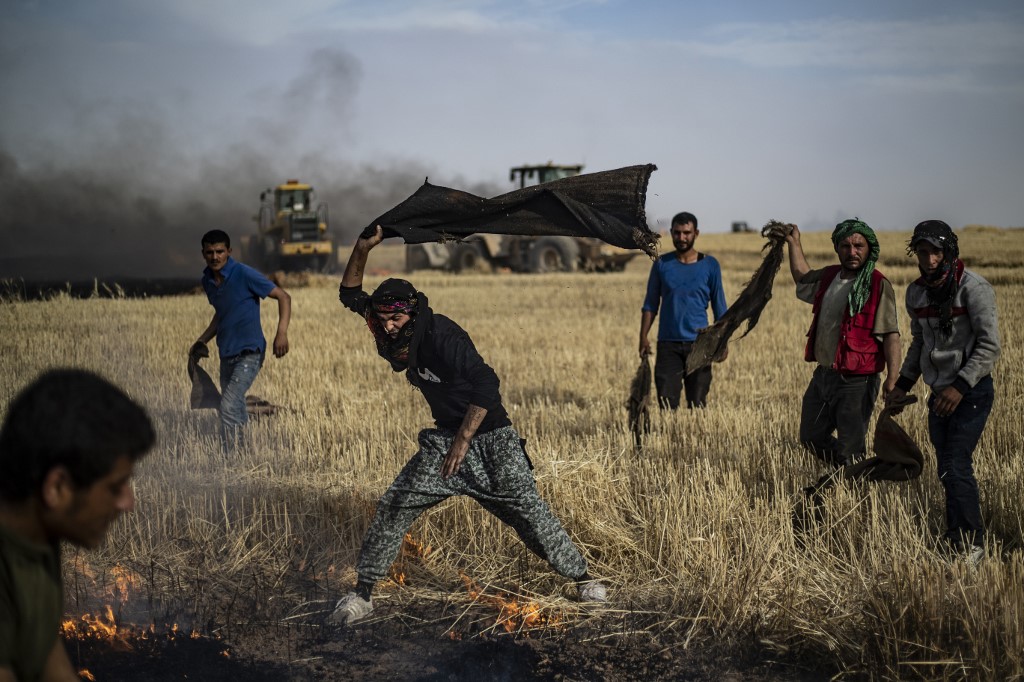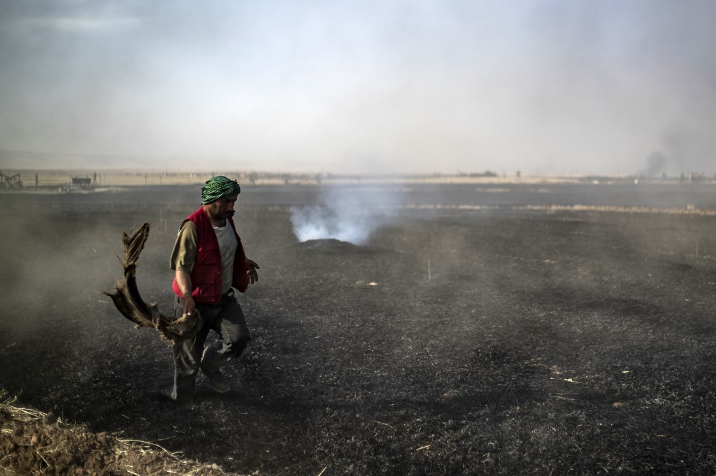"Fires today engulfed hundreds of hectares of wheat in Tirbespi and the fires are still raging," the head of the Kurdish agriculture authority Salman Bardo said.