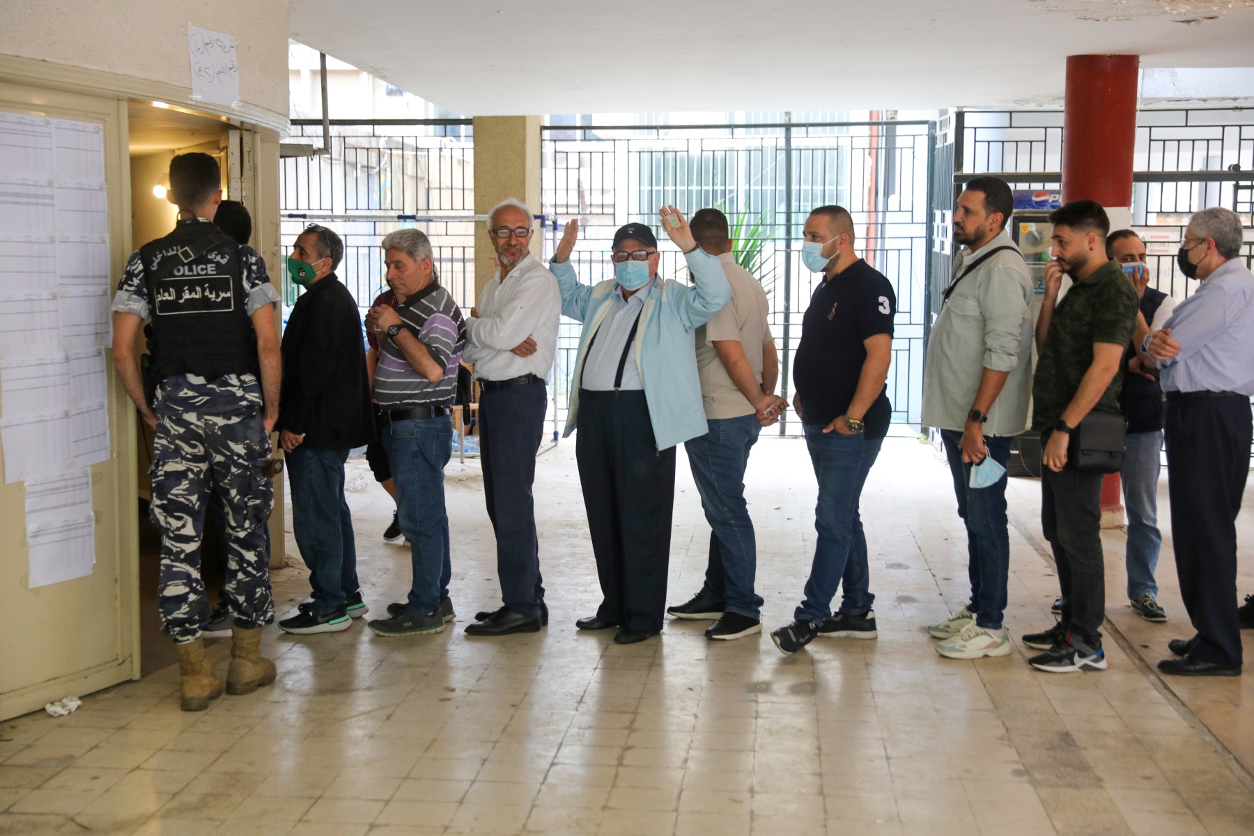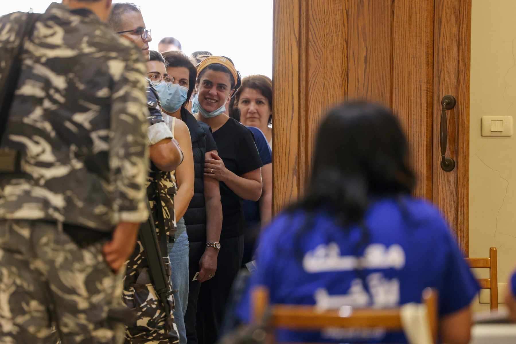 Voters queue outside a polling station in the Lebanese capital Beirut, on May 15, 2022, ahead of casting their vote in the parliamentary election.(Photo by IBRAHIM AMRO / AFP)