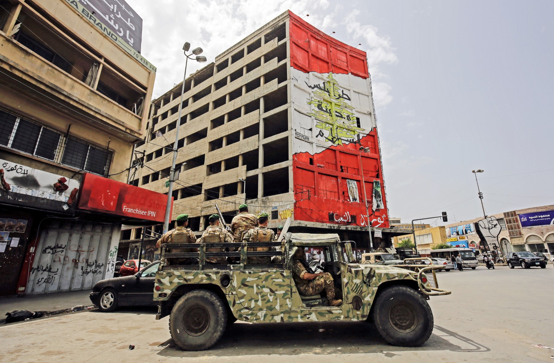 Lebanese security forces deploy at Nur Square on the southern entrance of the northern port city of Tripoli during the parliamentary election, on May 15, 2022. (Photo by Ibrahim CHALHOUB / AFP)