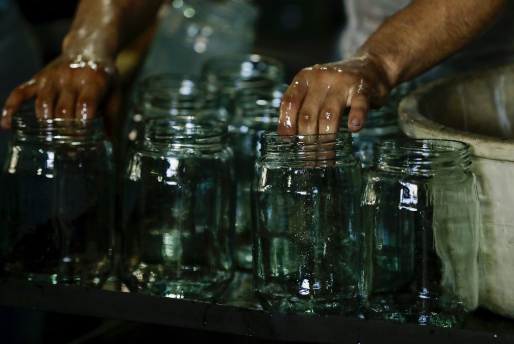 Glass retrieved from Beirut after the massive explosion at its port re-emerged as molten glass ready to be recycled into traditional slim-necked water jugs.