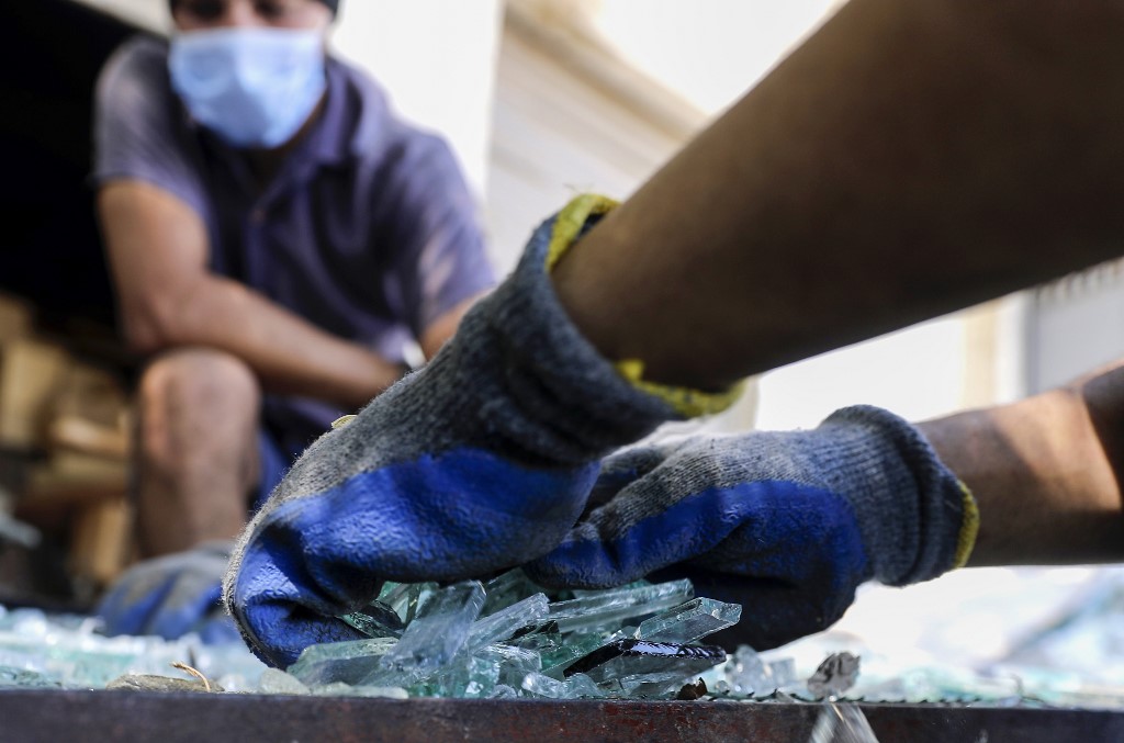 More than 5,000 tons of glass was shattered by the explosion. From mid-August to September 2, almost 58 tons were sent for reuse at Uniglass and Koub/Golden Glass in Tripoli. Volunteers tried to salvage at least part of the tons of glass that littered the streets to help the local industry.