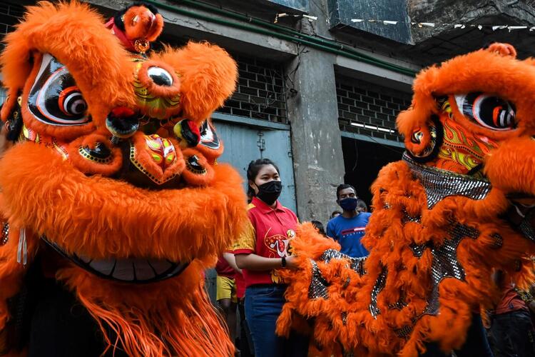 Members of the Chinese community in Mexico perform the traditional Chinese lion dance at a Chinese restaurant in Mexico City, on January 31, 2022 ahead of Lunar New Year on February 1, which marks the start of the Year of the Tiger. (Photo by PEDRO PARDO / AFP)
